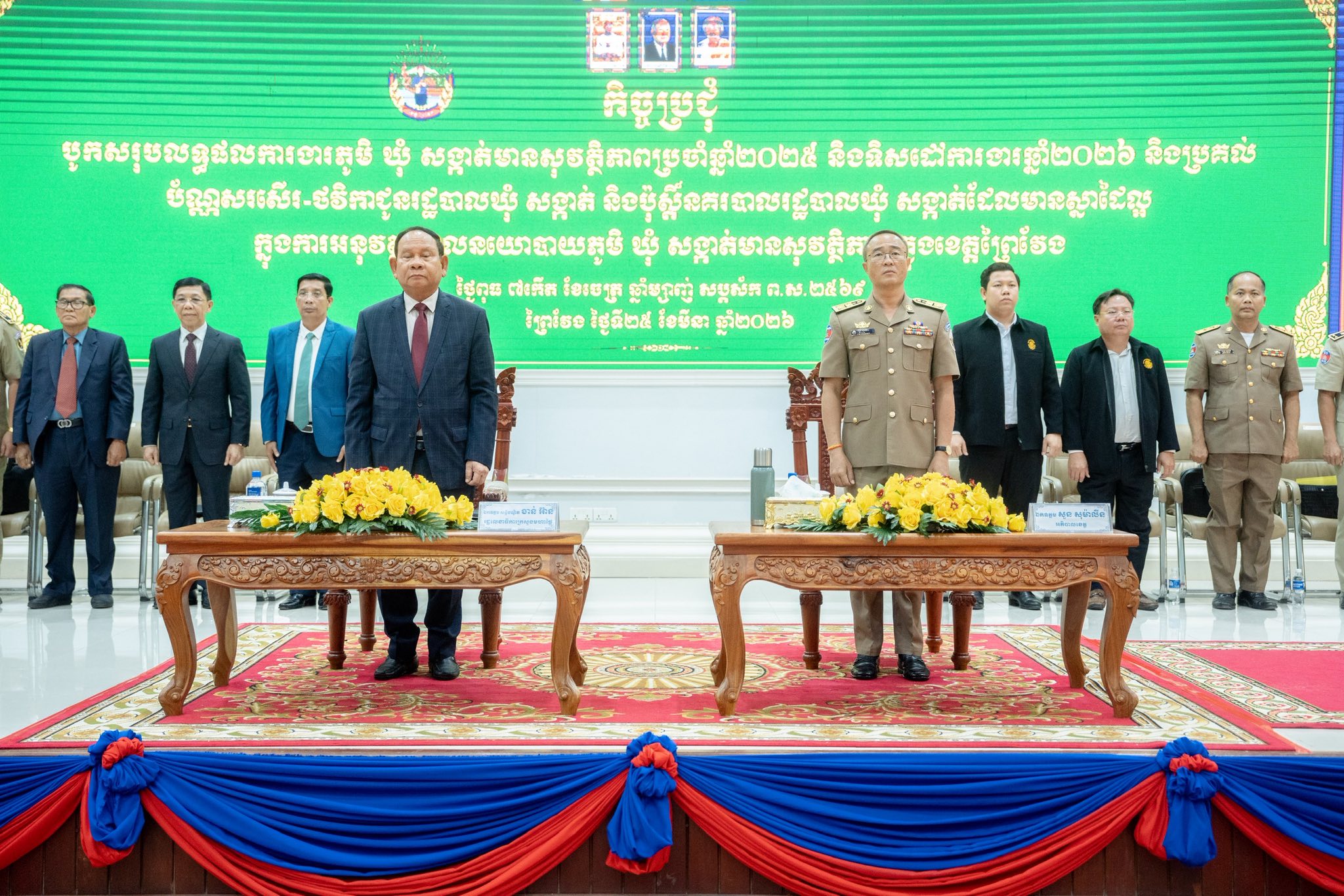 កិច្ចប្រជុំបូកសរុបលទ្ធផលការងារភូមិ ឃុំ សង្កាត់មានសុវត្ថិភាពប្រចាំឆ្នាំ២០២៥ និងលើកទិសដៅការងារឆ្នាំ២០២៦ និងប្រគល់ប័ណ្ណសរសើរ-ថវិកាជូនរដ្ឋបាលឃុំ សង្កាត់ និងប៉ុស្តិ៍រដ្ឋបាលឃុំ សង្កាត់ ដែលមានស្នាដៃល្អក្នុងការអនុវត្តគោលនយោបាយភូមិ-ឃុំ-សង្កាត់មានសុវត្ថិភាព នៅក្នុងខេត្តព្រៃវែង។