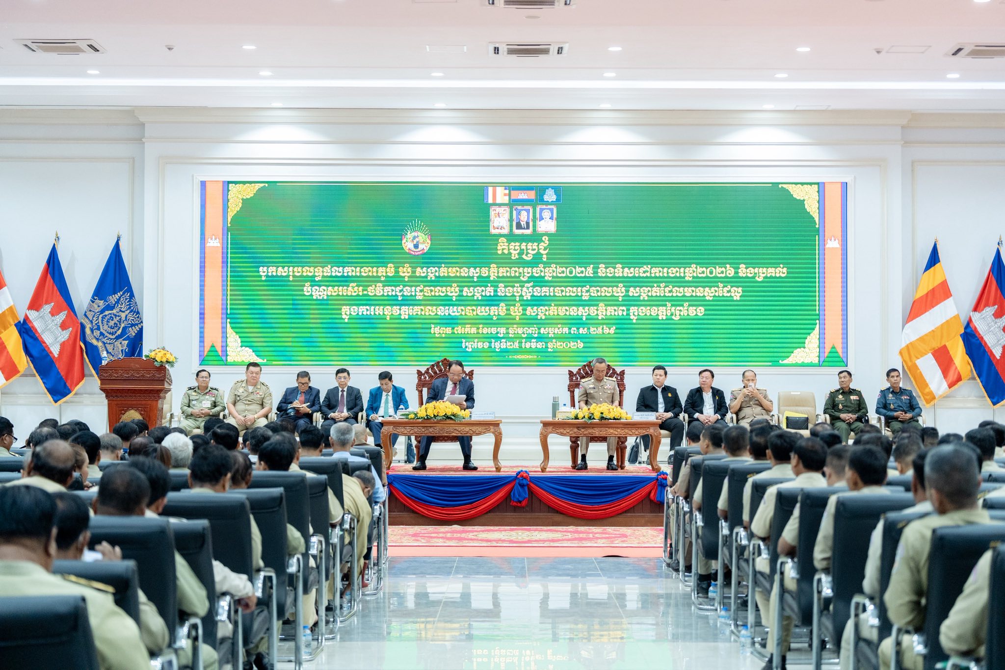កិច្ចប្រជុំបូកសរុបលទ្ធផលការងារភូមិ ឃុំ សង្កាត់មានសុវត្ថិភាពប្រចាំឆ្នាំ២០២៥ និងលើកទិសដៅការងារឆ្នាំ២០២៦ និងប្រគល់ប័ណ្ណសរសើរ-ថវិកាជូនរដ្ឋបាលឃុំ សង្កាត់ និងប៉ុស្តិ៍រដ្ឋបាលឃុំ សង្កាត់ ដែលមានស្នាដៃល្អក្នុងការអនុវត្តគោលនយោបាយភូមិ-ឃុំ-សង្កាត់មានសុវត្ថិភាព នៅក្នុងខេត្តព្រៃវែង។